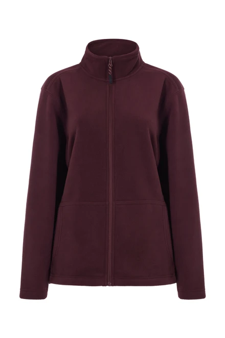 WOMEN'S polar fleece jacket. Polar Fleece. 100% polyester. 280 g/m². High collar. Soft polar fleece, comfortable and warm. Excellent results in lint resistance tests. Full reverse zip with plastic pull. Kangaroo pocket with fine binding. Reinforced herringbone inner tape around the neck. Slim fit.