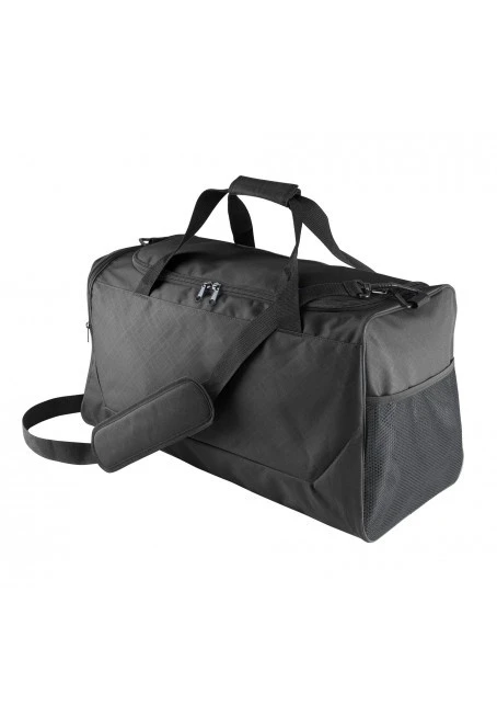 Multi sports bag in 600D polyester PVC backing. Side mesh pocket and side shoe holder pocket. Detachable padded shoulder strap, SBS zips.