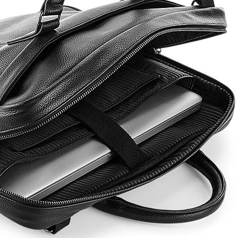 TearAway label for ease of rebranding, full length zippered front pocket for ease of decoration, self fabric carry handle, gunmetal fittings, padded laptop compartment, laptop compatible up to 15.6", padded internal iPad/ Tablet compartment, fully lined in pinstriped fabric, internal organisation pockets, zippered internal pocket, detachable adjustable shoulder strap; Dimensions: 41 x 30 x 7 cm; Capacity: 9 litres