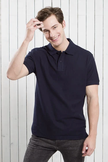 Adult short sleeve polo shirt. Piqué fabric. Two buttons placket. 1x1 Rib collar and cuffs. Side slits. Enzyme wash.
