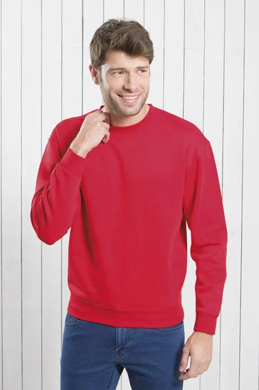 Unisex Sweatshirt. Double stitch on collar, sleeves and bottom. Lycra rib on collar, cuffs and bottom.