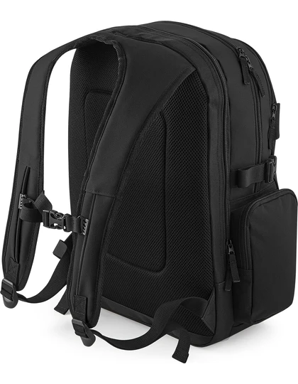 Material: 600D Polyester; Capacity: 23 litres; TearAway label for ease of rebranding, laptop compatible up to 17", external access padded laptop compartment, skateboard carry straps, internal organiser section, zippered front pocket, zippered side pockets, padded back panel, compression straps, padded adjustable shoulder straps, grab handle