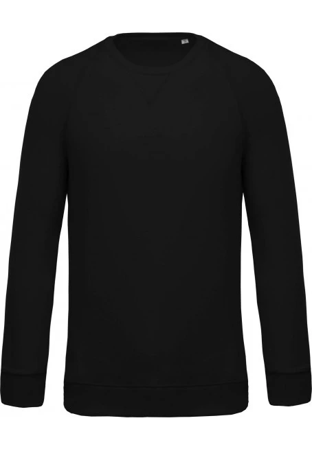 80 % organic cotton / 20 % polyester certified OCS Blended - Organic Content Standard. French terry. Trendy style. Ribbed neck, cuffs and hem. Twill taped neck and V finish at neckline. No brand label at neck, only size tag for easy decoration access.