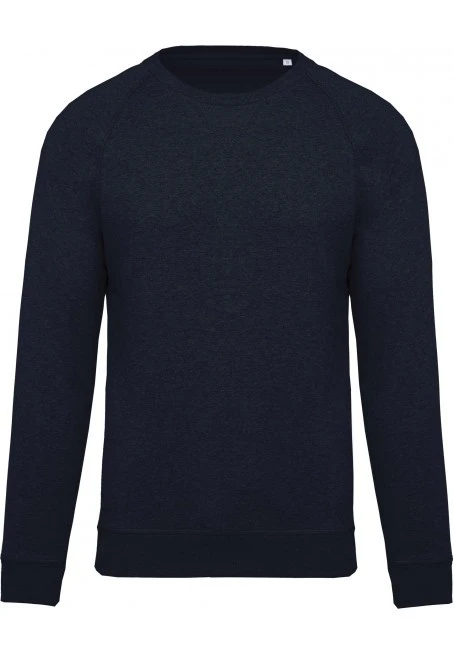 80 % organic cotton / 20 % polyester certified OCS Blended - Organic Content Standard. French terry. Trendy style. Ribbed neck, cuffs and hem. Twill taped neck and V finish at neckline. No brand label at neck, only size tag for easy decoration access.