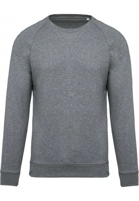 80 % organic cotton / 20 % polyester certified OCS Blended - Organic Content Standard. French terry. Trendy style. Ribbed neck, cuffs and hem. Twill taped neck and V finish at neckline. No brand label at neck, only size tag for easy decoration access.