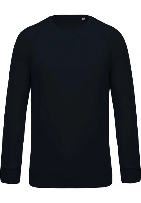 80 % organic cotton / 20 % polyester certified OCS Blended - Organic Content Standard. French terry. Trendy style. Ribbed neck, cuffs and hem. Twill taped neck and V finish at neckline. No brand label at neck, only size tag for easy decoration access.