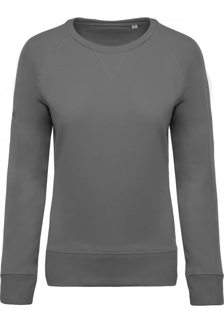 80 % organic cotton / 20 % polyester certified OCS Blended - Organic Content Standard. French terry. Trendy style. Ribbed neck, cuffs and hem. Twill taped neck and V finish at neckline. No brand label at neck, only size tag for easy decoration access.