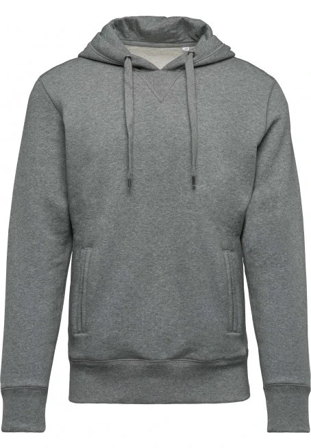 80 % organic cotton / 20 % polyester certified OCS Blended - Organic Content Standard . Brushed fleece. Trendy style. 2 front pockets with piping. Lined hood. Ribbed cuffs, hem and hood edge. Matching drawstring. Twill taped neck and V finish at neckline. Earphone access on front pocket and neck. No brand label at neck, only size tag for easy decoration access.