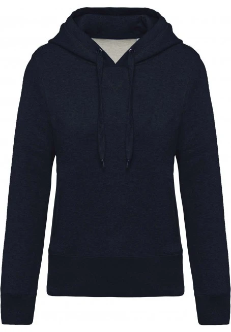 80 % organic cotton / 20 % polyester certified OCS Blended - Organic Content Standard . Brushed fleece. Fashion slim fit. 2 front pockets with piping. Lined hood. Ribbed cuffs, hem and hood edge. Matching drawstring. Twill taped neck and V finish at neckline. Earphone access on front pocket and neck. No brand label at neck, only size tag for easy decoration access.
