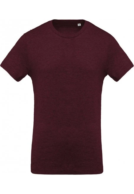 100 % organic cotton certified OCS 100 - Organic Content Standard (Wine Heather, Ocean Blue Heather and French Navy Heather : 80 % organic cotton / 20 % polyester certified OCS Blended. Grey Heather : 70 % organic cotton / 30 % viscose certified OCS Blended). Fashion slim fit. Ribbed crew neck. No brand label at neck, only size tag for easy decoration access.