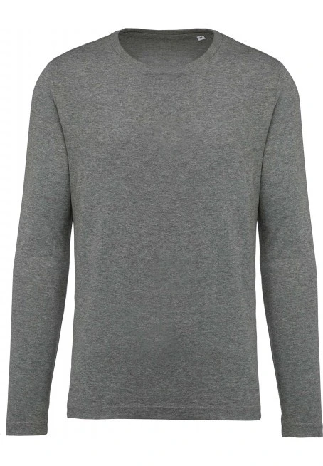 100 % organic cotton certified OCS 100 - Organic Content Standard (Grey Heather : 70 % organic cotton / 30 % viscose certified OCS Blended). Fashion slim fit. Ribbed crew neck. No brand label at neck, only size tag for easy decoration access.