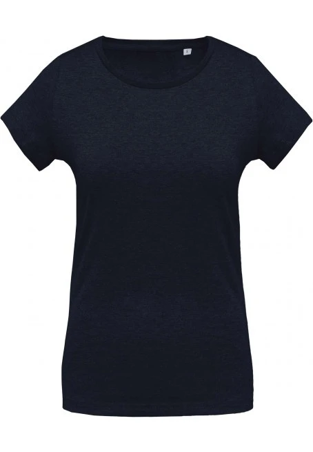 100 % organic cotton certified OCS 100 - Organic Content Standard (Wine Heather, Ocean Blue Heather and French Navy Heather : 80 % organic cotton / 20 % polyester certified OCS Blended. Grey Heather : 70 % organic cotton / 30 % viscose certified OCS Blended). Fashion slim fit. Ribbed crew neck. No brand label at neck, only size tag for easy decoration access.