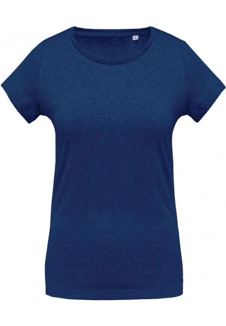 100 % organic cotton certified OCS 100 - Organic Content Standard (Wine Heather, Ocean Blue Heather and French Navy Heather : 80 % organic cotton / 20 % polyester certified OCS Blended. Grey Heather : 70 % organic cotton / 30 % viscose certified OCS Blended). Fashion slim fit. Ribbed crew neck. No brand label at neck, only size tag for easy decoration access.