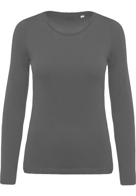 100 % organic cotton certified OCS 100 - Organic Content Standard (Grey Heather : 70 % organic cotton / 30 % viscose certified OCS Blended). Fashion slim fit. Ribbed crew neck. No brand label at neck, only size tag for easy decoration access.