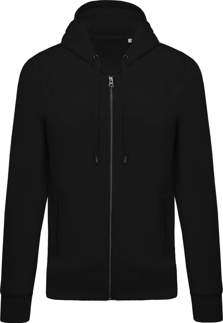 80 % organic cotton / 20 % polyester certified OCS Blended - Organic Content Standard. Brushed fleece. Trendy style. 2 front pockets with piping. Metal zipper,. Ribbed cuffs, hem and lined hood edge with matching drawstring. Inner twill taped neck. Earphone access on front pocket and neck. No brand label at neck, only size tag for easy decoration access.
