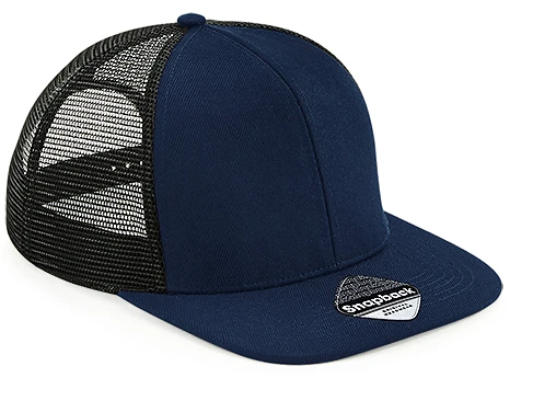 Composition: 100% Cotton Twill Front Panel and Peak, 100% Polyester Mesh Rear Panels; TearAway label for ease of rebranding, 6 panel design, flat peak, authentic peak sticker, Structured front panels, retro style snapback size adjuster