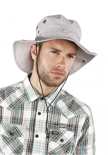 100% polyester with coated fabric. Sealed main seams, water resistant. Elliptical shape to maintain a clear field of vision, flexible and foldable edges thanks to snap buttons, ventilation eyelets, drawcord size adjuster with stopper. Available in 2 sizes.