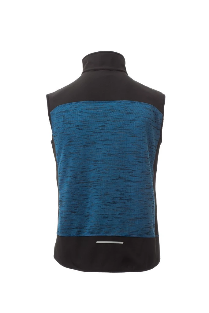 Men’s comfort-fit vest, zip closure with "semi-auto lock" metal slider and customised pull. Thin edge on the armhole and waist, two side pockets with zip, one breast pocket. Knitted workmanship with black soft-shell inserts.