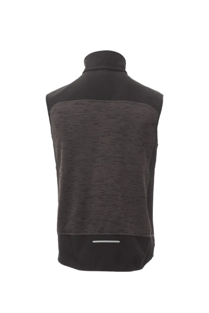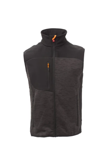 Men’s comfort-fit vest, zip closure with "semi-auto lock" metal slider and customised pull. Thin edge on the armhole and waist, two side pockets with zip, one breast pocket. Knitted workmanship with black soft-shell inserts.