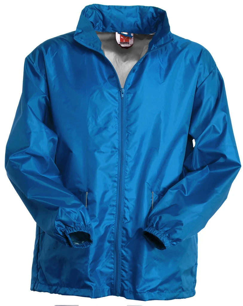 Unisex waterproof jacket, foldaway hood, elasticated cuffs, two pockets with concealed zip, reflex inserts on the back. Unlined, silver-effect lining (except for the version in yellow). Individually packed in a drawstring bag with side strap