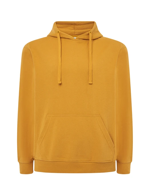 Matched colour drawcord. Kangaroo pocket. 1x1 Rib with lycra in cuffs and waistband. French Terry.