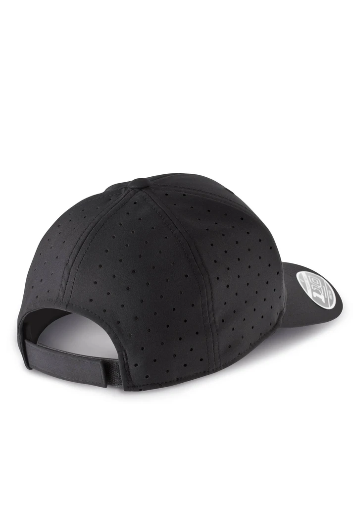 92 % polyester / 8 % elastane. 6 panels. Curved peak and reinforced panels inside crown to maintain shape. Flexfit® Cool & Dry technology for added comfort and optimal absorption of moisture on inner elasticated band. Laser perforations on side and back panels. Size adjuster with tear release fastening.