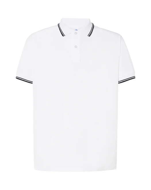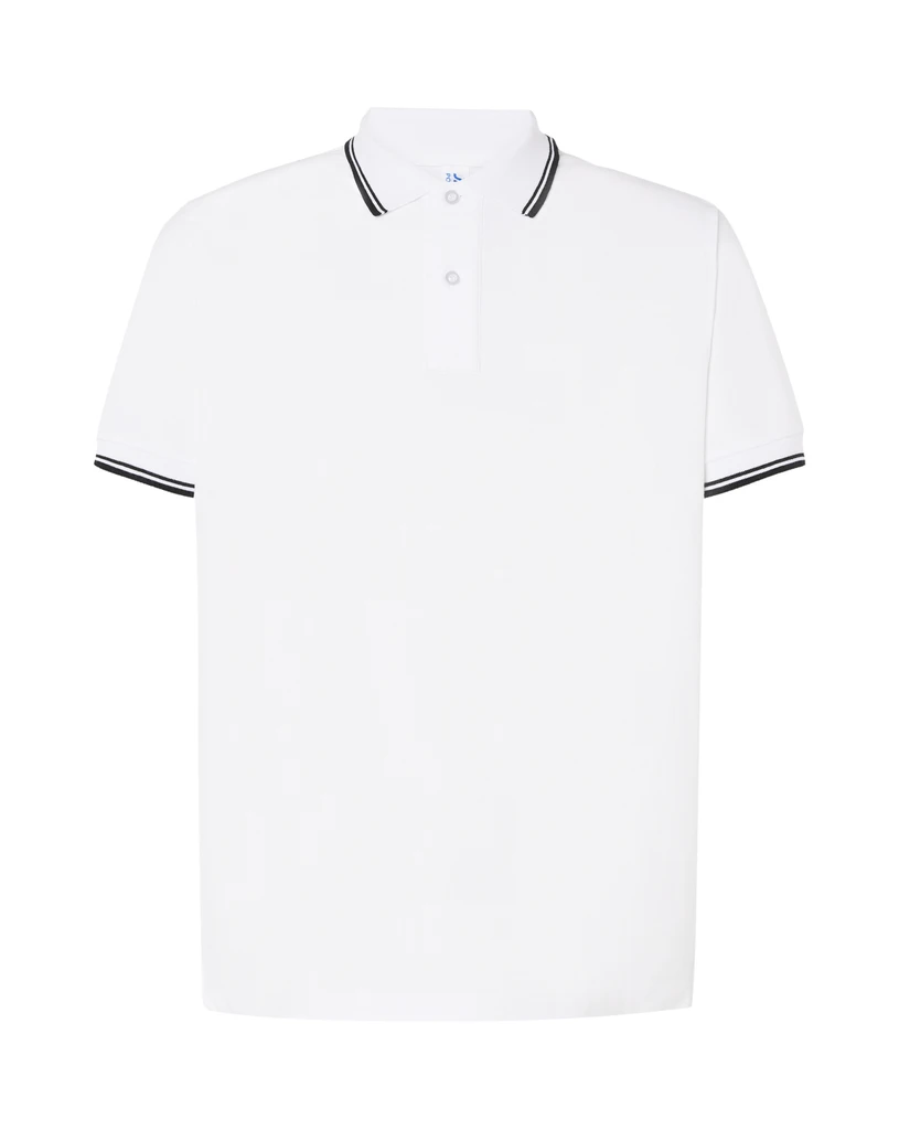Adult short sleeve polo shirt. Piqué fabric. Two buttons placket. 1x1 Rib collar and cuffs. Side slits.