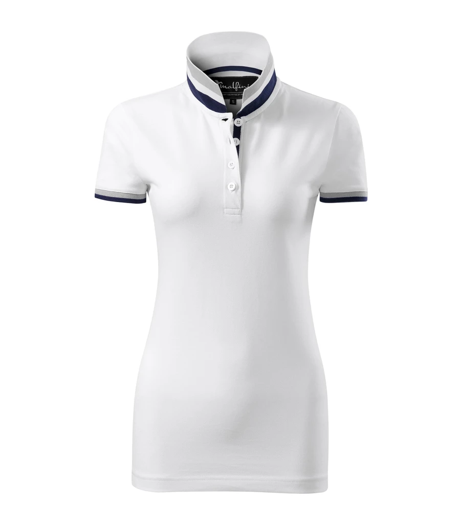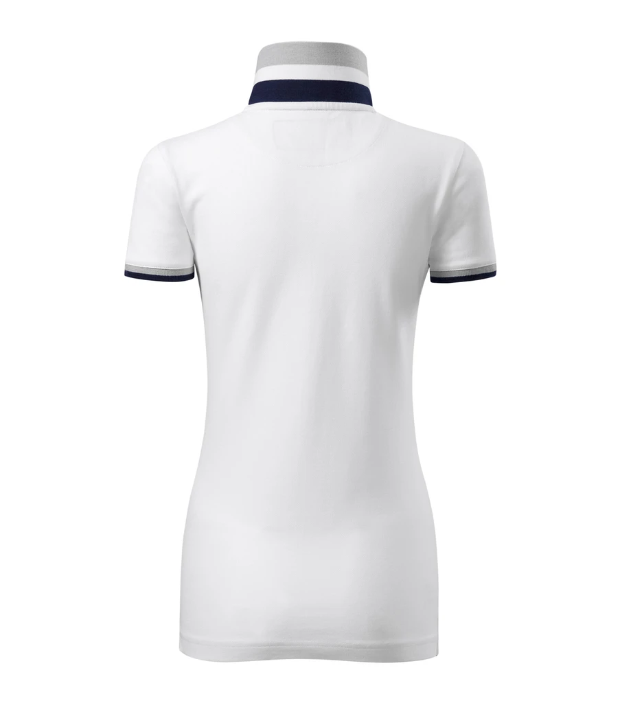 fashion ladies polo shirt with short sleeves is decorated with contrast elements