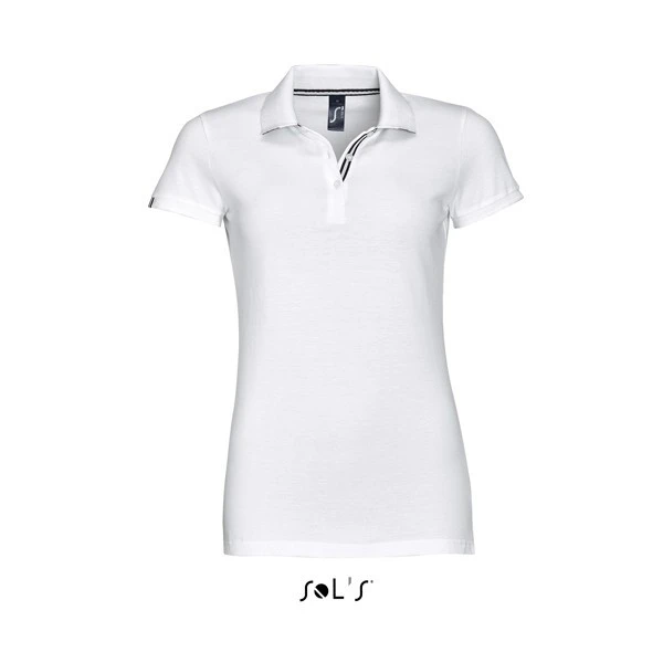 Quality: 200 PIQUÉ - 100% Ringspun cotton; Rib-knitted collar and cuffs, Reinforcing tape on neck, Short sleeves, Contrasting stripes under collar, Reinforced placket with 3-pearlised buttons, Contrasting strip at collar, button placket and side slits + tags at cuffs, Cut and sewn, Close-fitting cut, Spare button on the inside seam
