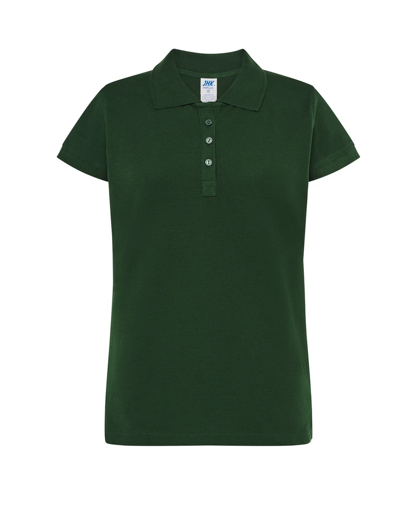 Polo piqué for women with short sleeves special for companies for its durability and quality. Available in 10 colors. From size S to 3XL. Removable label.