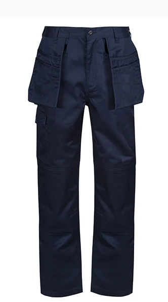 Part elasticated waist with belt loopsm, metal button and zip fly opening, easy accessible fold away holster pockets with outside compartment pockets, reinforced crotch seam, 2 Front pockets, side cargo pocket button fasten, 2 rear pockets, knee pad pockets, side leg Ruler pocket, D-ring attachment, hammer Loop, reinforced seams with triple stitching; Available in short (987.17) and regular (977.17) leg lengths