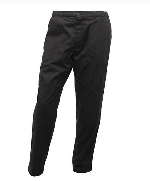 Water repellent coating, hardwearing polycotton fabric, fabric weight 245 gsm - 65% polyester 35% cotton fabric, part-elasticated waist, knee pad pockets, belt loops, zip fly opening, metal shank button to CF fasten, 2 front pockets 1 side cargo pocket button fasten, 2 rear pockets, side leg ruler pocket, D-ring attachment, hammer loop, reinforced crotch seam, reinforced seams with triple stitching