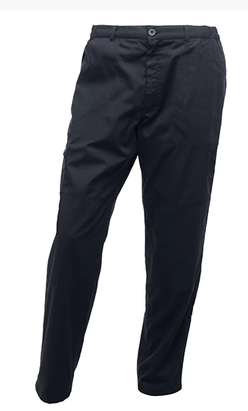 Water repellent coating, hardwearing polycotton fabric, fabric weight 245 gsm - 65% polyester 35% cotton fabric, part-elasticated waist, knee pad pockets, belt loops, zip fly opening, metal shank button to CF fasten, 2 front pockets 1 side cargo pocket button fasten, 2 rear pockets, side leg ruler pocket, D-ring attachment, hammer loop, reinforced crotch seam, reinforced seams with triple stitching