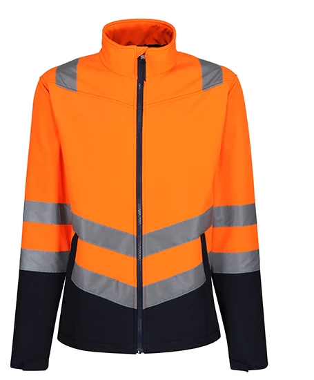 Soft woven softshell XPT with a warm back layer, waterproof and breathable membrane made of two-layer material, EN ISO 20471: 2013 + A1: 2016 class 2, orange also meets RIS-3279 / TOM, 2 bottom zip pockets, inner zip and chin protection, smooth; reflective oblique zigzag pattern