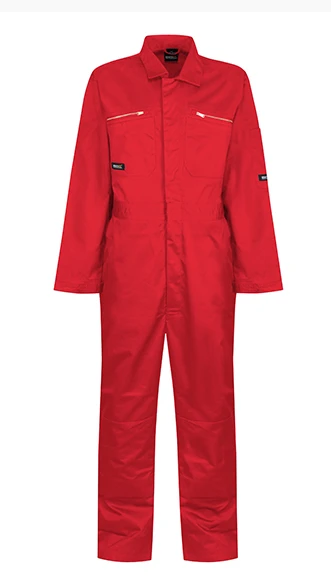 Stud fastened collar, concealed full zip, 2 chest patch pockets with zip, 1 upper sleeve pocket with zipm, part elasticated waist, reinforced crotch seam, 2 side pocket openings, 2 back pockets, knee pad pockets, side leg ruler pocket