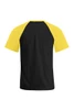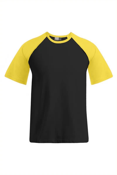The two-tone t-shirt with raglan sleeves and a tie at the neck is made of combed cotton. The raglan t-shirt has a classic cut and is made of hose fabric.