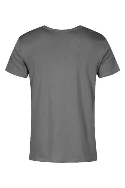 The unique single jersey t-shirt with a v-neck and self-woven collar is made from a long staple combed cotton. The especially smooth surface and flowing fabric give the jersey a unique, elastic and silky finish. The T-shirt has a narrow cut and is made with side seams. Certified according to OEKO-TEX®