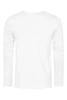 The unique single jersey long-sleeve t-shirt with a custom fabric collar is made from long-staple combed cotton. The particularly smooth surface and soft-fitting fabric give the jersey a unique, elastic and silky finish. The T-shirt has a narrow cut and is made with side seams. Certified according to OEKO-TEX®