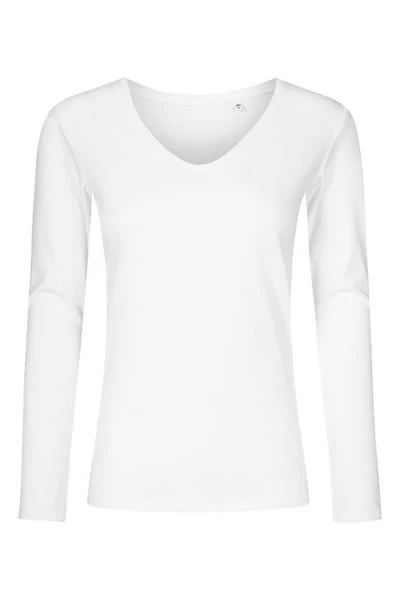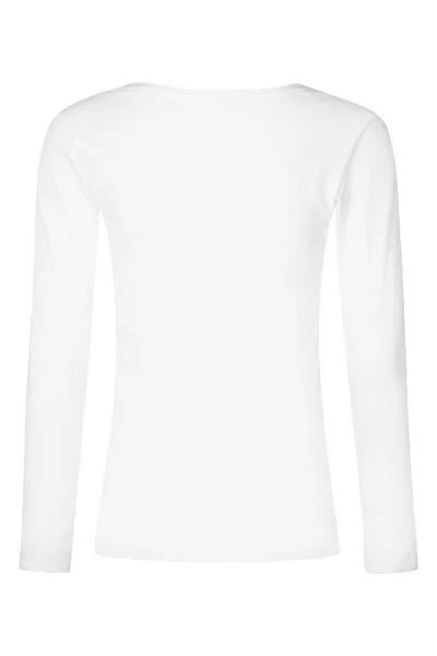 Long-sleeve, V-neck single-jersey t-shirt with collar is made of combed cotton. The especially smooth surface and flowing fabric give the jersey a unique, elastic and silky finish. The T-shirt has a narrow cut and is made with side seams. Certified according to OEKO-TEX®