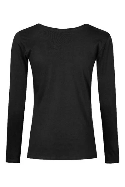 The unique single jersey long-sleeve t-shirt with a custom fabric collar is made from long-staple combed cotton. The particularly smooth surface and soft-fitting fabric give the jersey a unique, elastic and silky finish. The T-shirt has a narrow cut and is made with side seams. Certified according to OEKO-TEX®