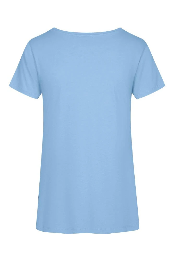A modern single jersey t-shirt with elastane in a narrow ribbed neckline is made of long staple combed certified (organic) cotton. The T-shirt has a particularly soft surface and is very suitable for any textile treatment. The T-shirt has a modern cut and is made with side seams. OEKO-TEX® certified.
