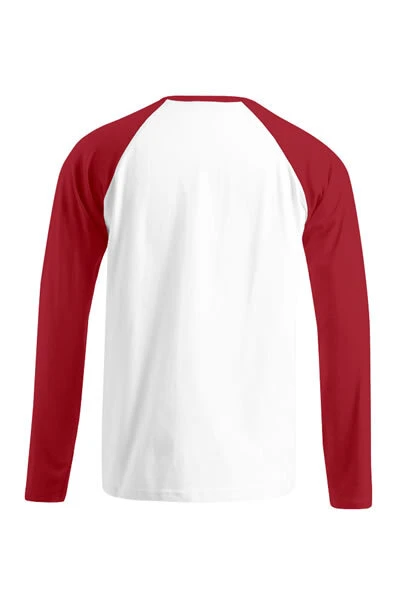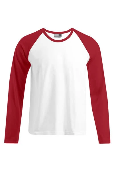The two-tone heavy jersey long sleeve t-shirt with raglan sleeves and contrasting neckline is made from combed cotton. The long-sleeved raglan t-shirt has a classic fit and is made of hose fabric.
