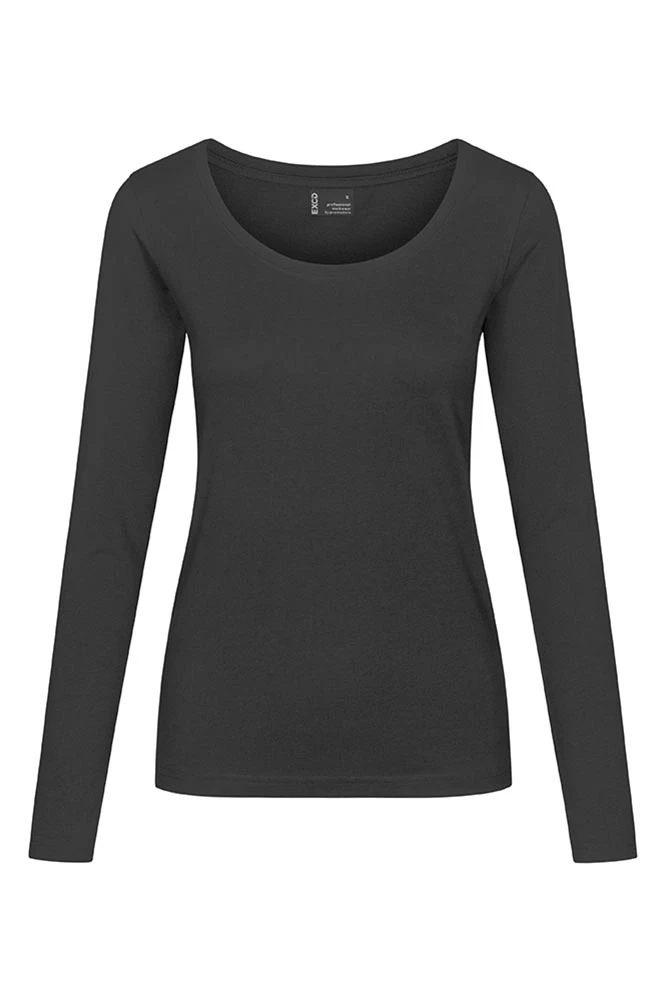 T-shirt with long sleeves is made of mixed fabric - jersey, polyester. The t-shirt has ribbing and a feminine low neckline with elastane, shoulder straps attached inside the side seams and is made with VORTEX® technology. The extremely smooth surface is resistant to pilling and very suitable for any type of textile treatment. The shoulder seams with fixing tape and double seams complete this product, as well as the back neck tape. EXCD impresses with excellent long-lasting quality, minimal shrinkage and easy maintenance. The EXCD long-sleeved t-shirt has an optimal fit, maximum wearing comfort thanks to the high proportion of cotton and is made with side seams. OEKO-TEX® certified.