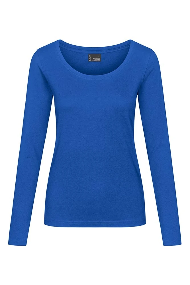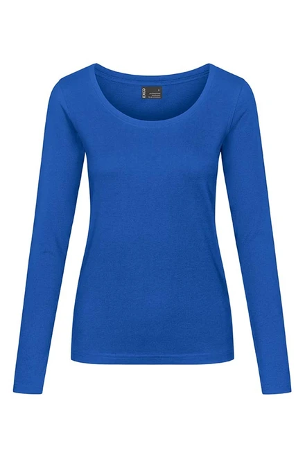 T-shirt with long sleeves is made of mixed fabric - jersey, polyester. The t-shirt has ribbing and a feminine low neckline with elastane, shoulder straps attached inside the side seams and is made with VORTEX® technology. The extremely smooth surface is resistant to pilling and very suitable for any type of textile treatment. The shoulder seams with fixing tape and double seams complete this product, as well as the back neck tape. EXCD impresses with excellent long-lasting quality, minimal shrinkage and easy maintenance. The EXCD long-sleeved t-shirt has an optimal fit, maximum wearing comfort thanks to the high proportion of cotton and is made with side seams. OEKO-TEX® certified.