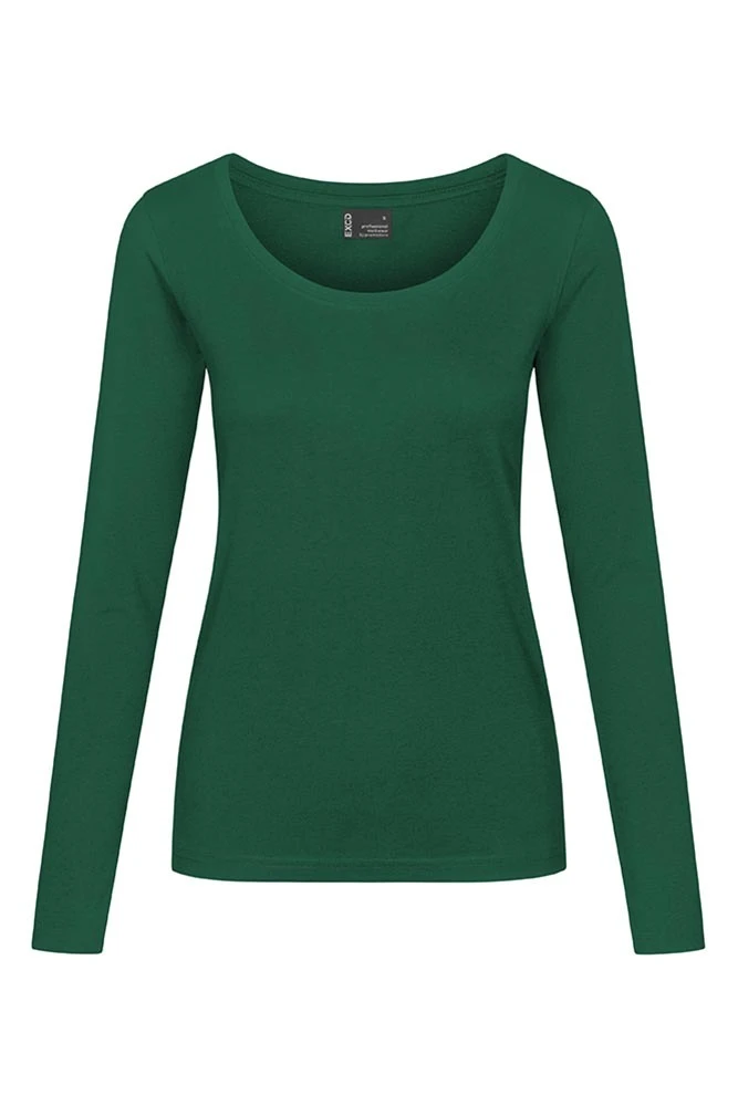 T-shirt with long sleeves is made of mixed fabric - jersey, polyester. The t-shirt has ribbing and a feminine low neckline with elastane, shoulder straps attached inside the side seams and is made with VORTEX® technology. The extremely smooth surface is resistant to pilling and very suitable for any type of textile treatment. The shoulder seams with fixing tape and double seams complete this product, as well as the back neck tape. EXCD impresses with excellent long-lasting quality, minimal shrinkage and easy maintenance. The EXCD long-sleeved t-shirt has an optimal fit, maximum wearing comfort thanks to the high proportion of cotton and is made with side seams. OEKO-TEX® certified.