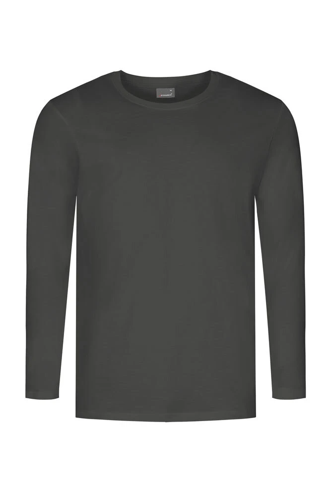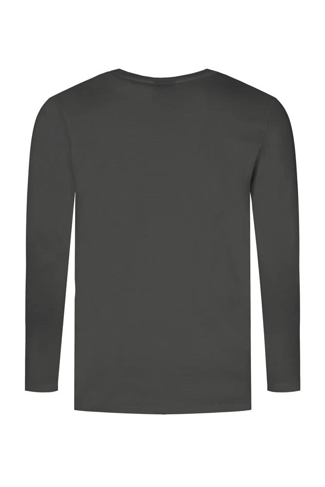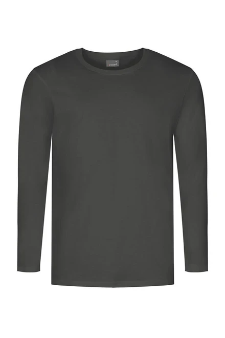 Classic single jersey long sleeve t-shirt with elastane in a small ribbed neckline is made from long staple combed cotton. The particularly fine surface of the T-shirt is very suitable for any textile modification. The long-sleeved T-shirt has a modern cut and is made of hose fabric. Certified according to OEKO-TEX®