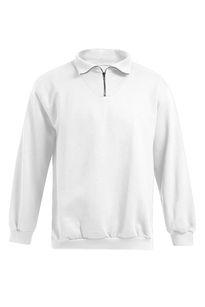 The classic molton troyer sweatshirt with nickel-free metal zip is combed inside, with elastane at the neck, sleeve cuffs and waist, and is made from combed cotton. The sweatshirt has a modern cut. Certified according to OEKO-TEX®