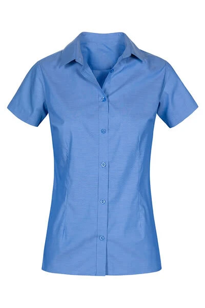Short sleeve classic blend oxford shirt with a reinforced kent collar and tonal button placket. It has a separate chest pocket. Features of this shirt: low-maintenance blend fabric, front and back darts, double back saddle, curved hem, made of combed cotton with polyester. The shirt has a modern cut.