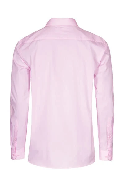 A classic long-sleeve blend oxford shirt with a reinforced kent collar and tone-on-tone button placket has a separate breast pocket with a spare button. Specific features of this shirt: low-maintenance blend fabric, front and back darts, double back saddle, curved hem, made of combed cotton with polyester. The shirt has a modern cut.