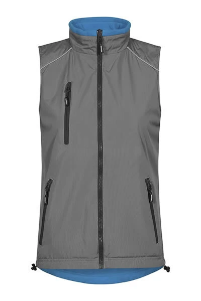 Featuring a stand-up collar, front napoleon pocket, two front/inside zipped side pockets, the reversible vest has a sewn-in key ring in the side pocket, reflective piping and zip pullers. The vest has a tunny drawcord on the hem with a stem, a curved hem, an invisible zipper for decoration and a modern cut.